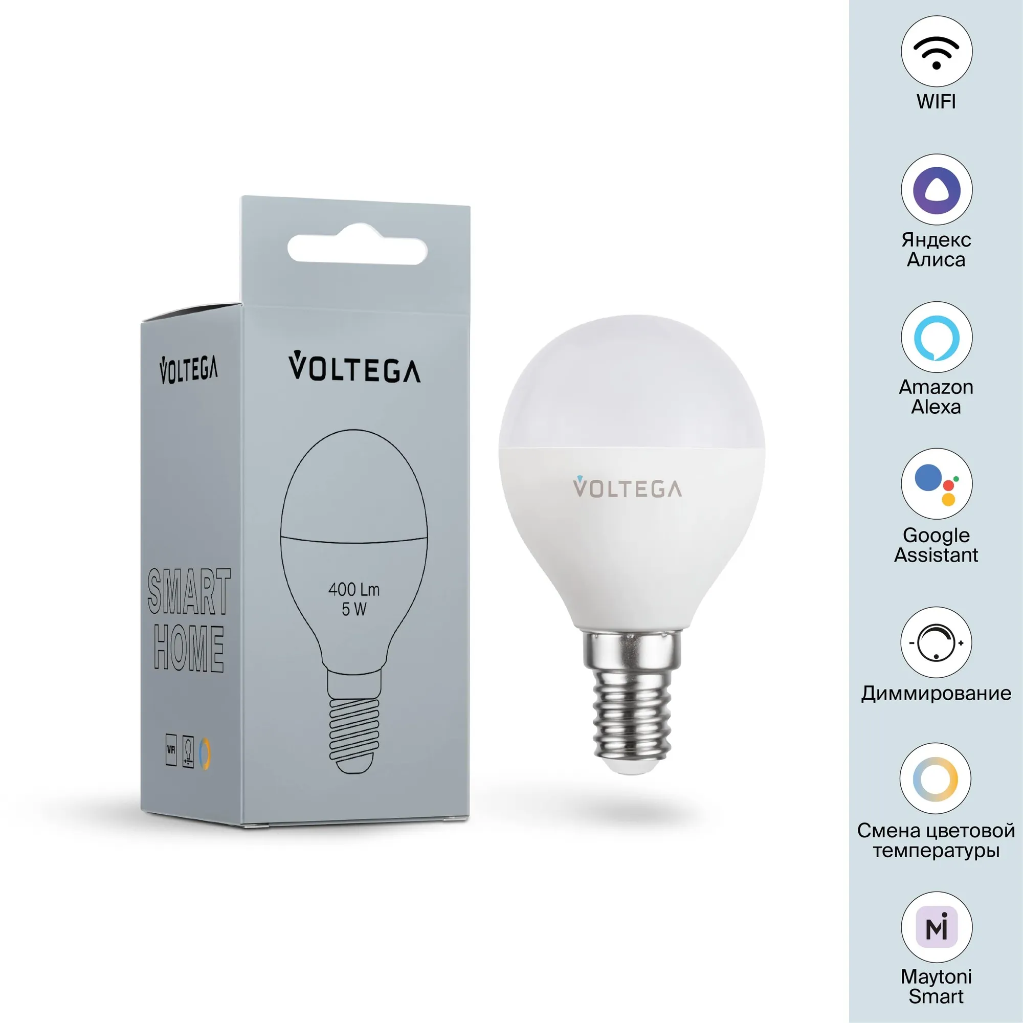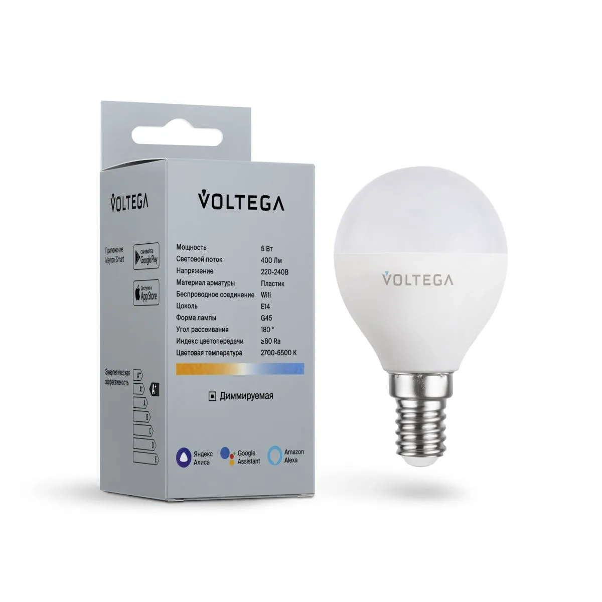 Лампа светодиодная диммируемая Voltega E14 5W 2700К матовая VG-G45E14cct-WIFI-5W 2428 купить в Чехове по лучшей цене