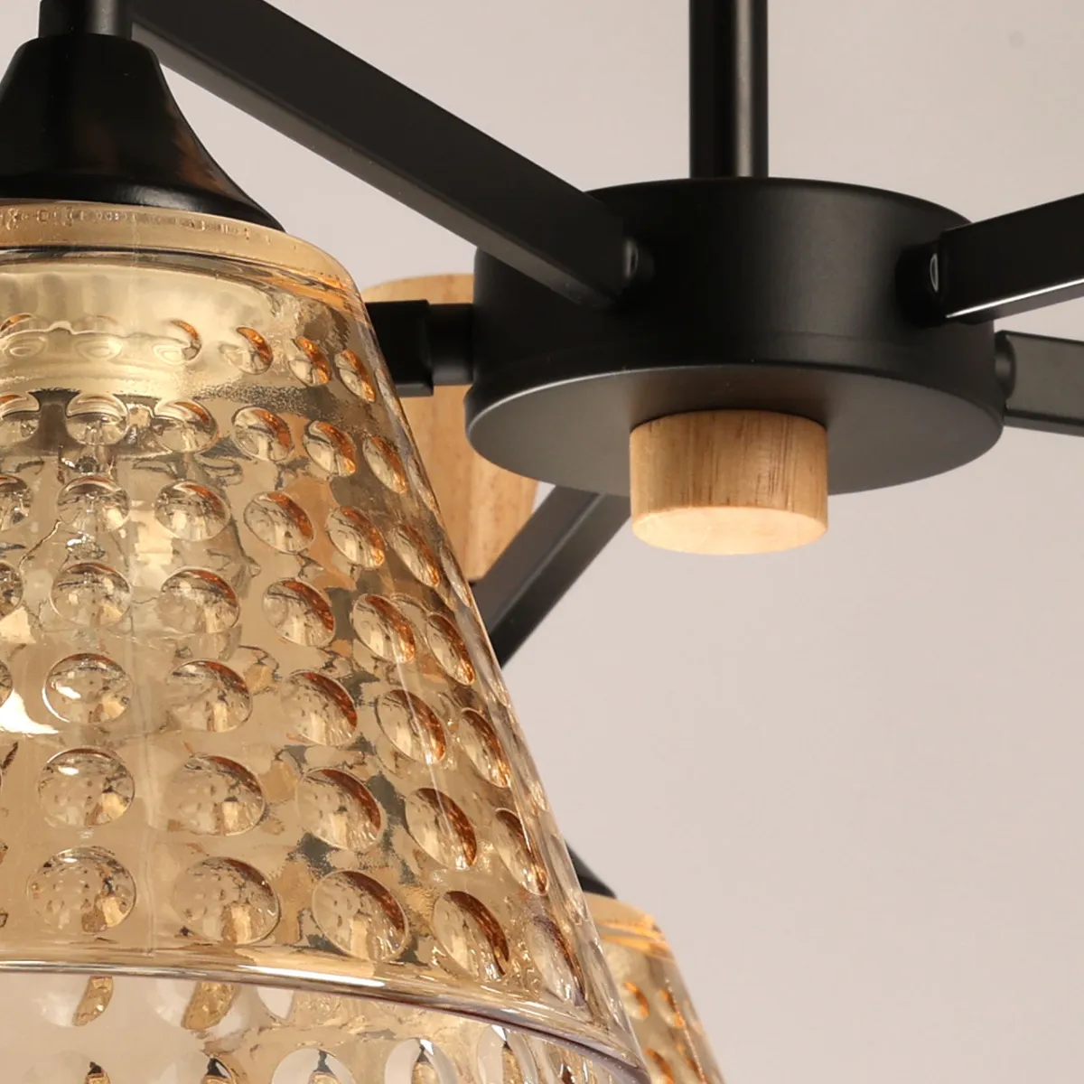Основание/ металл/ черный Плафон/ стекло/ шампань Декор/ дерево/ натуральное