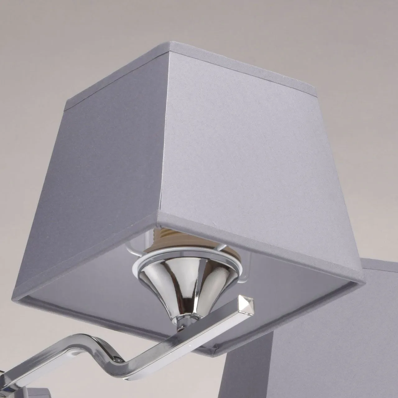 Металлическое основание цвета хрома. Плафоны - текстиль.
