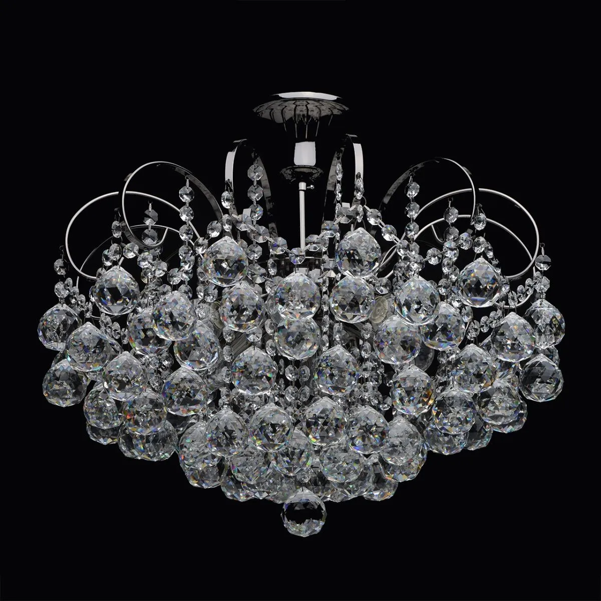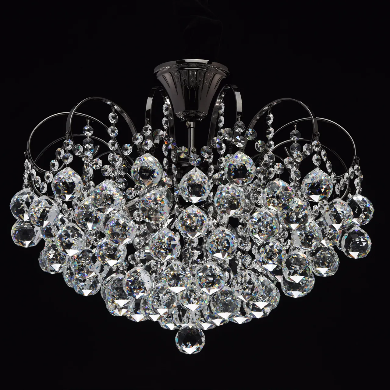 Металлическое основание цвета никеля, декоративные подвески из хрусталя.